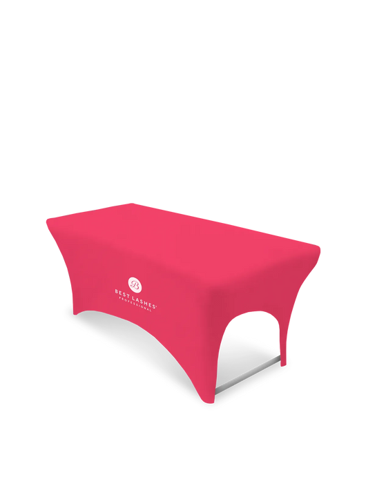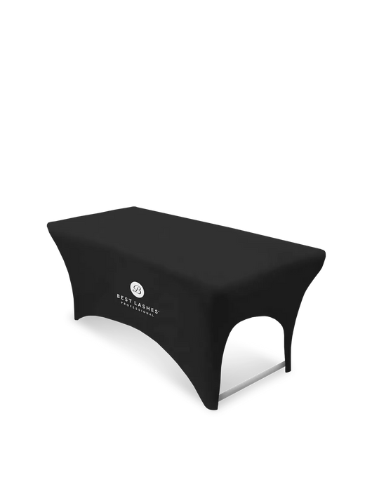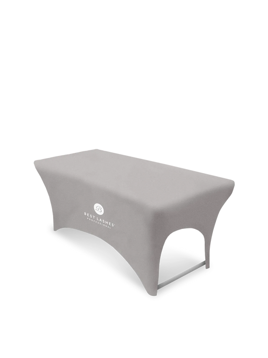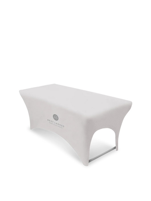 Soft and light bed cover made of a flexible material. The bed cover has a cut-out for the legs on one end. It adds to the exclusivity of any beauty salon by covering the entire bed, including its legs.