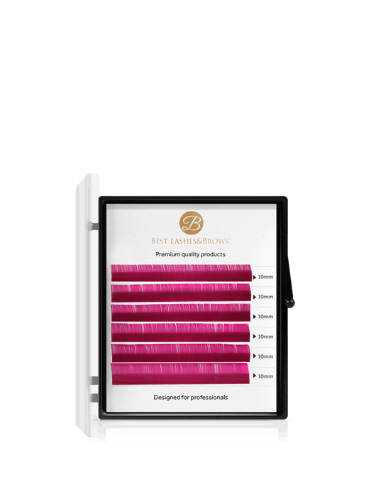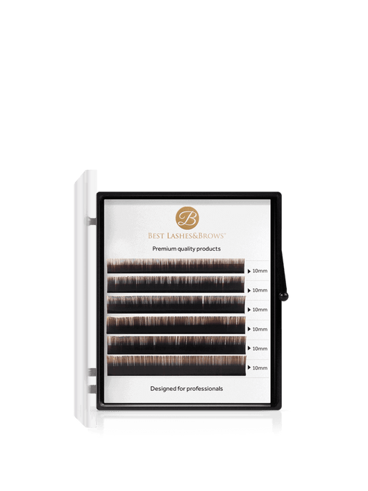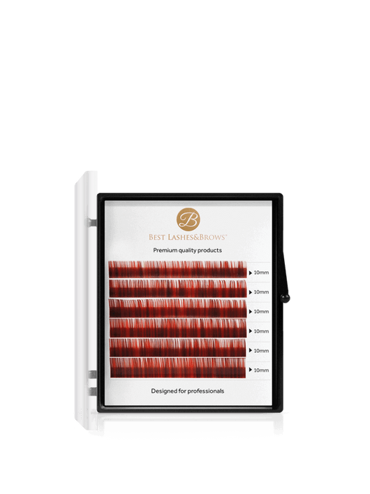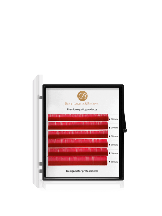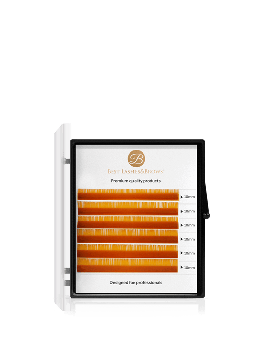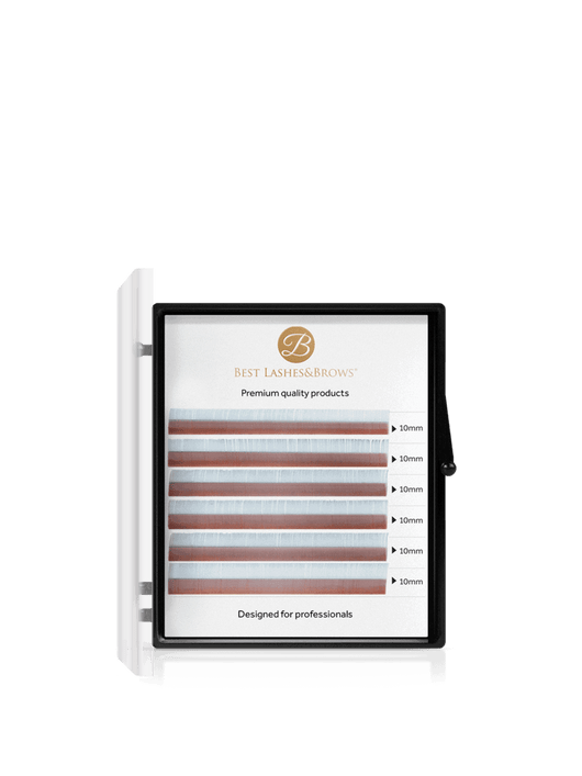 Our 6 rows of coloured lash trays are made from premium 100% synthetic fibres, which do not lose their curl after weeks of use. Thanks to their beautiful pigmented colour, they can be used to apply a full lash line, from natural-looking light volume sets to volume sets. The only limit to creativity is your imagination! The lashes are not too tightly adhered to the lash line, and are on a clear card for better visibility; so you can easily remove the lashes. The lash fans can be shaped using the classic fan technique.